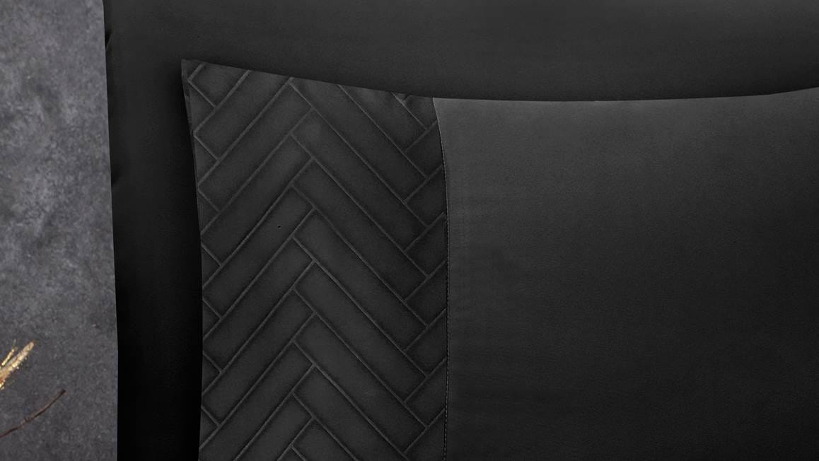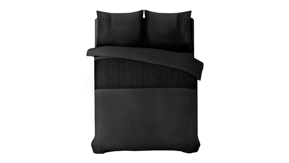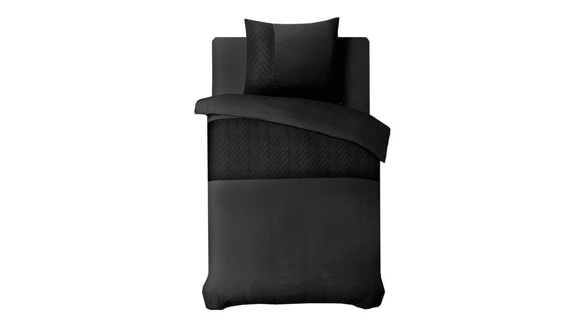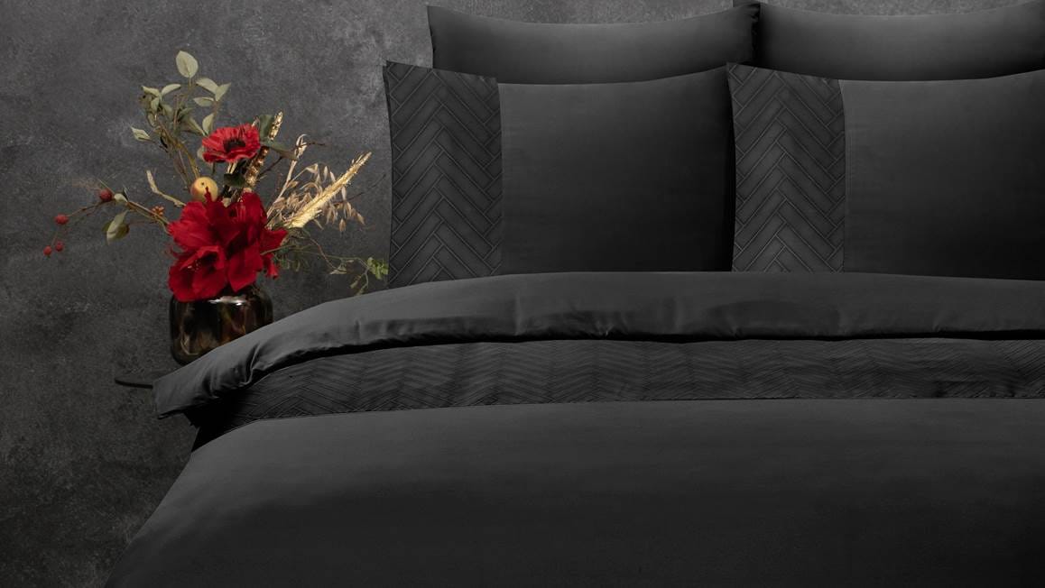 Met het Sleeptime Valencia dekbedovertrek geef je jouw slaapkamer een stijlvolle uitstraling. Het overtrek heeft een prachtige diepzwarte kleur die eenvoudig te combineren is. De kussenslopen en het overtrek zijn voor zien van een subtiel vissengraatpatroon.