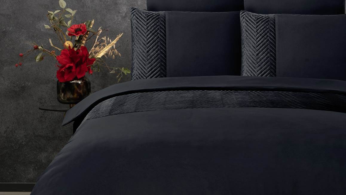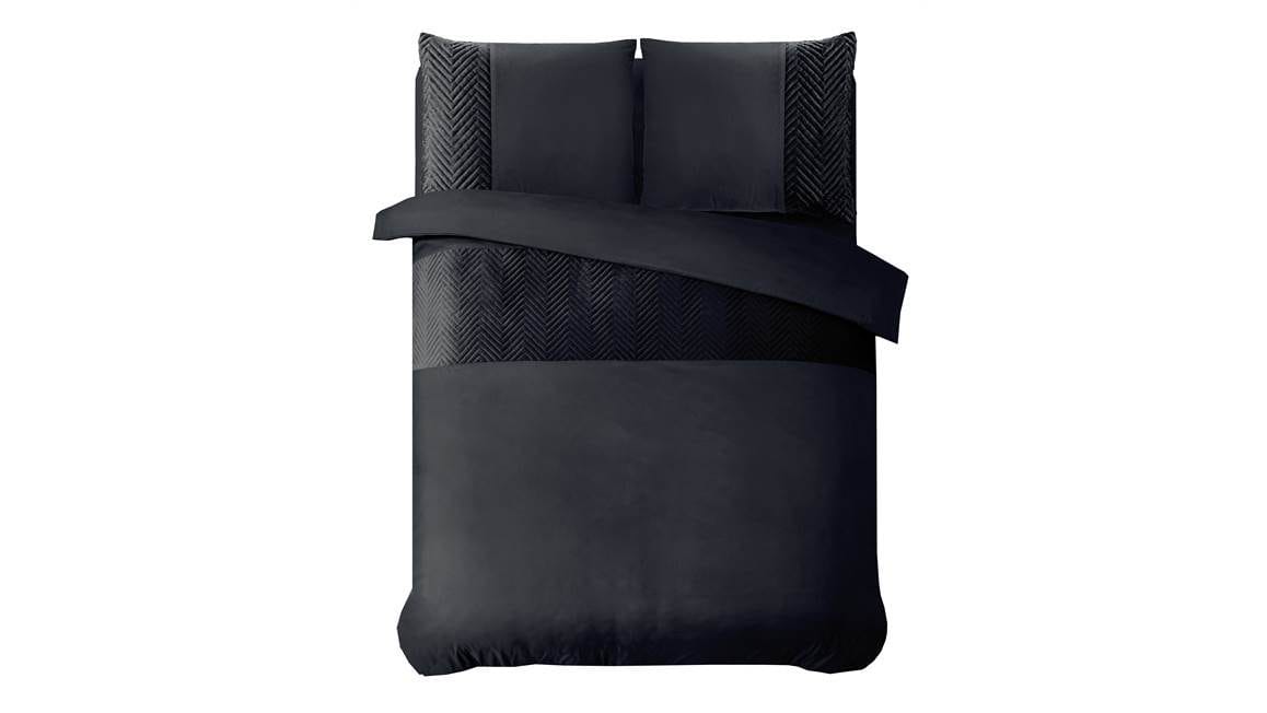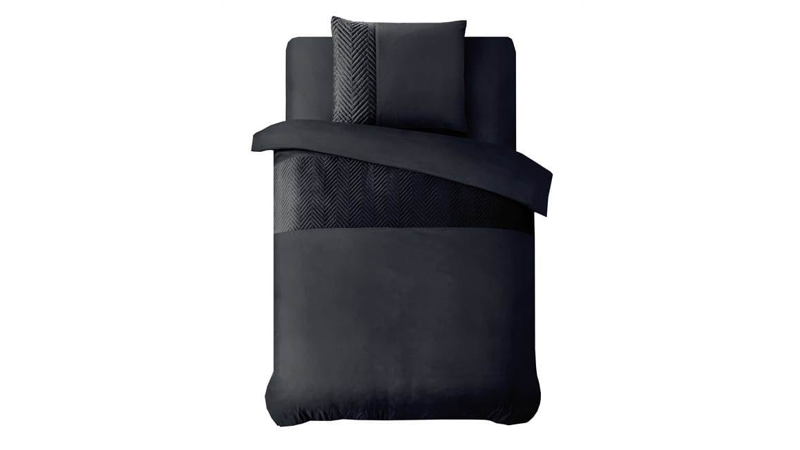 Heb jij een moderne slaapkamer? Dan kan het Velvet Crossline dekbedovertrek van het merk Sleeptime niet ontbreken! Het zwarte overtrek is voorzien van een zachte velvetband met daarin een speelse visgraatprint. Val iedere avond heerlijk in slaap.