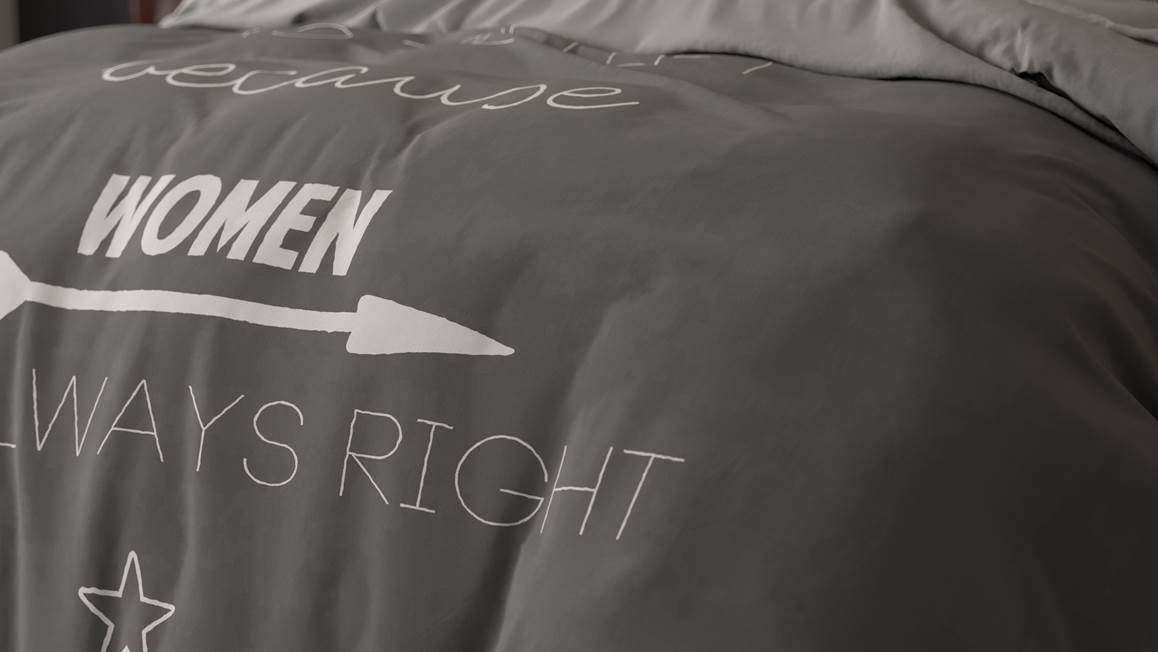 Ben jij nog op zoek naar het perfecte dekbedovertrek? Dan is het leuke Sleeptime Women Always Right dekbedovertrek een goede keuze voor jou. Deze print bestaat uit verschillende grijstinten en heeft een grappige tekst.